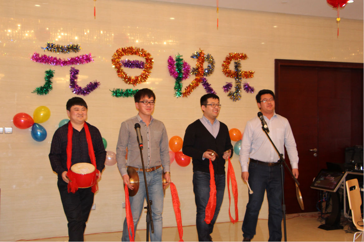 随着一段精彩的 “三句半”表演开场,迎新年联欢活动正式拉开帷幕。公司企管部、信息中心共同合唱的歌曲《奔跑》,彰显了年轻人激情和活力;互动游戏《我来比划你来猜》、《打地鼠》,更是妙趣横生,令人捧腹大笑;党政事务部的曲艺节目《双簧》,夸张的表情配以幽默的方言,表演得惟妙惟肖,引来掌声不断;采购部徐飞的一首《蒙古人》更是将场上气氛带入了高潮……
