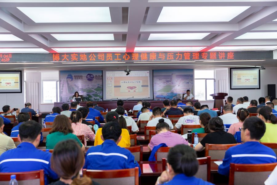 8月4日上午,博大实地公司在行政楼五楼会议室举办员工心理健康与压力管理专题讲座。讲座分为心理健康知识和现场互动两部分。公司高管,各部室、生产车间负责人及一线生产人员60余人参加讲座。