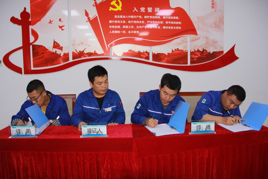 会上宣读了师带徒工作要求及师徒结对名单,明确了师带徒工作的实施细则及相关要求。15组师徒依次走上签字席,郑重地在师徒协议上签字,并合影留念。来自气化工序的包洪兵和电气工序的李雨龙分别代表徒弟和师傅做表态发言。