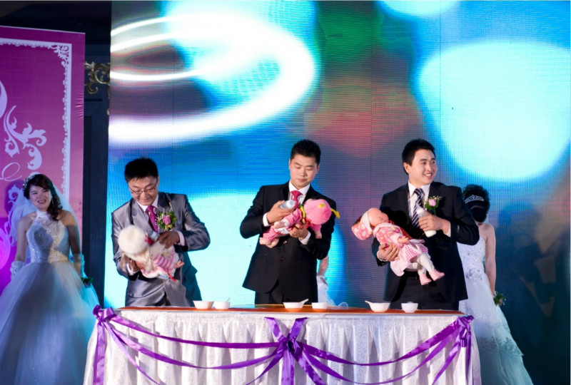 19:00,庆典仪式开始。5对新人在现场亲朋好友及同事的祝福声中,携手步入婚姻的殿堂,并彼此赠送了爱情信物。公司副总经理纪玉虎代表远兴公司致辞,向5对新人表示热烈的祝贺和真诚的祝福,并希望5对新人今后不论在事业上还是生活中都能互敬、互爱、互助,用聪明才智和青春热情谱写事业的新篇章,建设幸福美满的和谐家庭。随后,公司副总经理董龙为新人证婚,并将公司精心准备的新婚礼物送予5对新人。5对新人用实际行动体现了“简约而隆重热烈、节俭而文明高雅”婚礼新风。